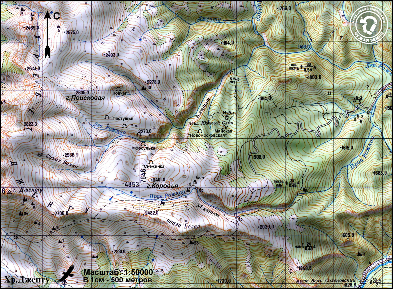 Карта c исправлениями (новые дороги и заросшие старые) на октябрь 2014г.