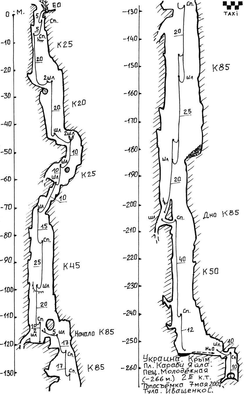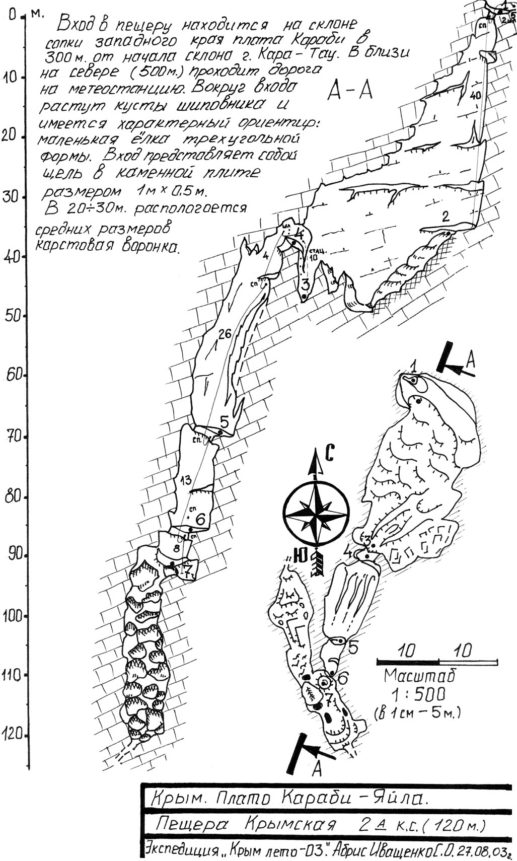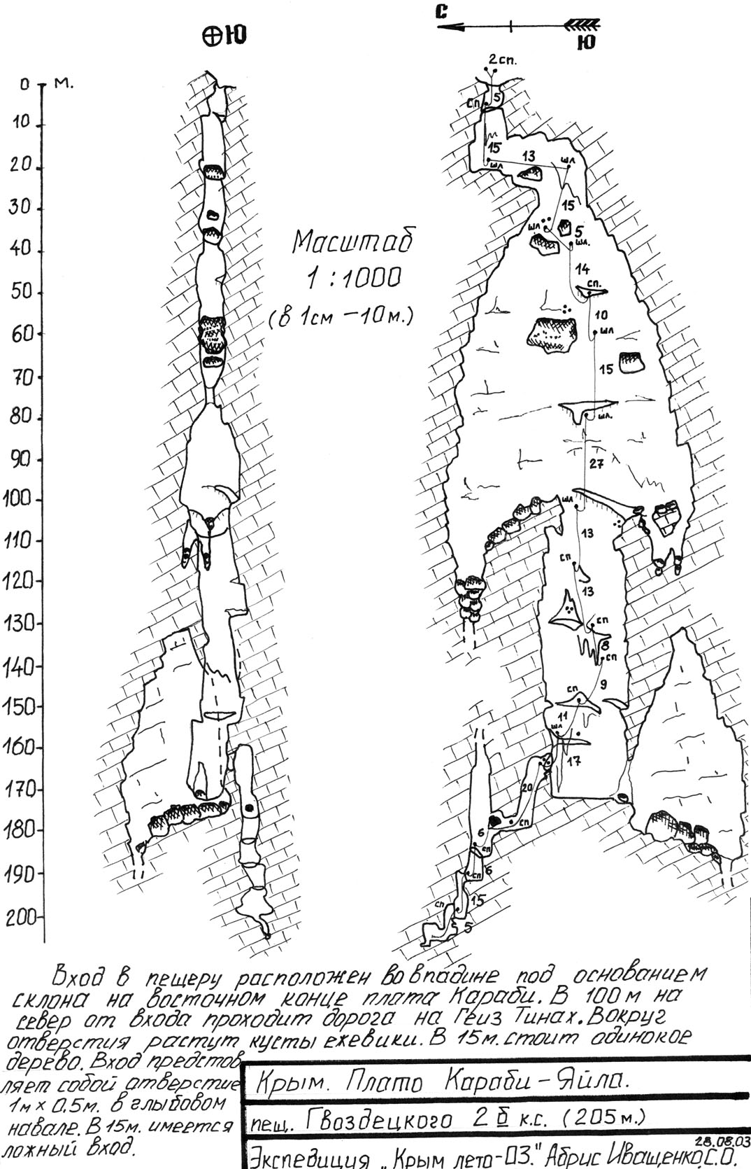 Взобравшись наверх по достаточно крутому склону, через ~50м выходим к колодцу "Испанец". При хорошей погоде нам удавалось заброситься сюда и ночевать в этом районе, при неблагоприятных обстоятельствах, мы здесь обедали на 2-й день заброски.
