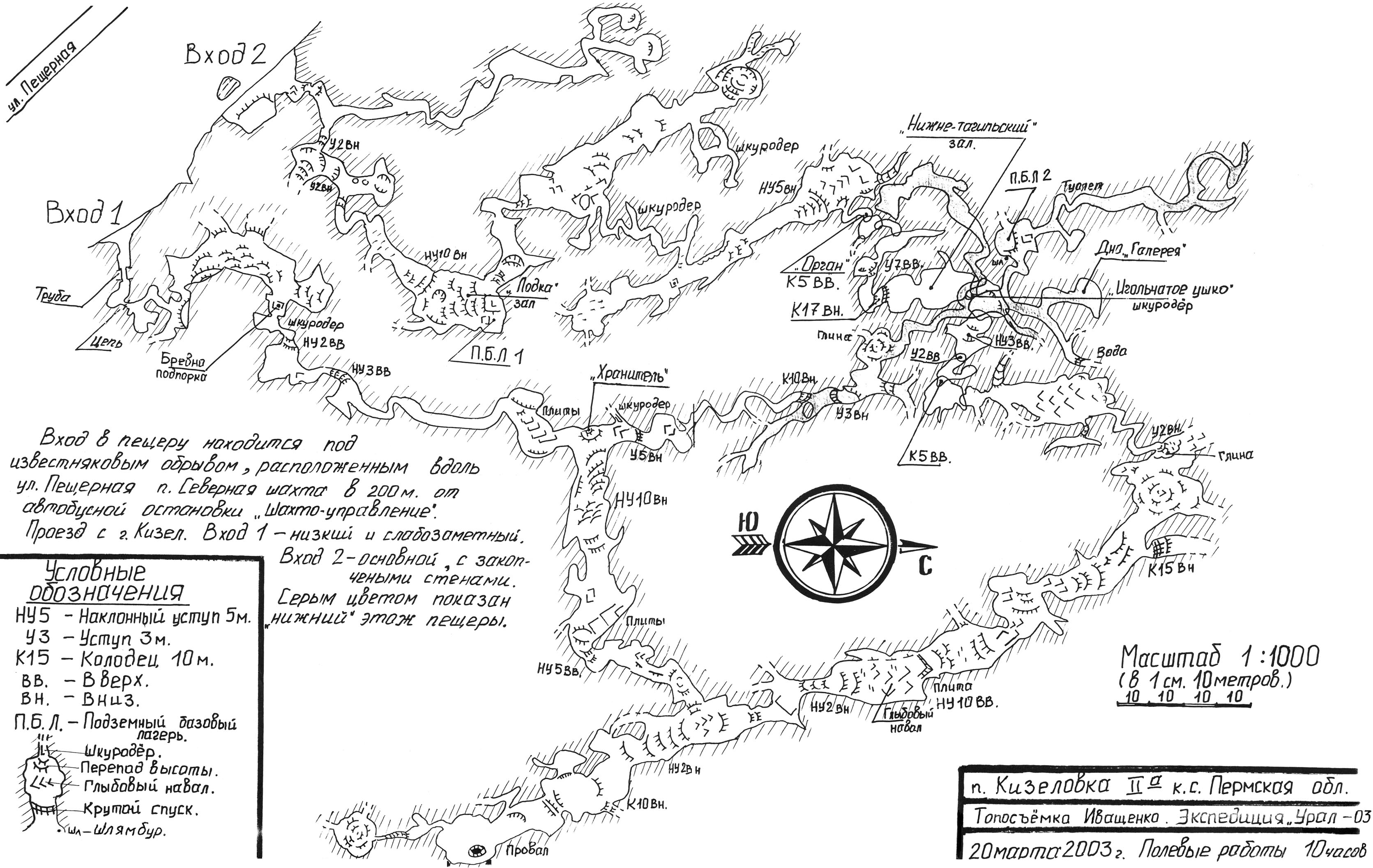 Вход 1 - низкий и слабозаметный. Вход 2 - основной, с закопчеными стенами.